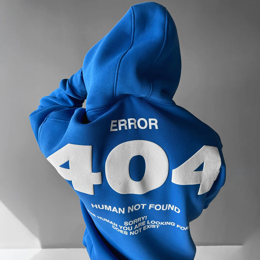 Add some tech-inspired humor to your streetwear with this men’s “404 Human Not Found” hoodie, featuring a bold white graphic that turns digital culture into fashion. Perfect for gamers, coders, and anyone with a taste for witty urban style, this hoodie blends comfort and creativity effortlessly — a must-have for UAE streetwear enthusiasts.